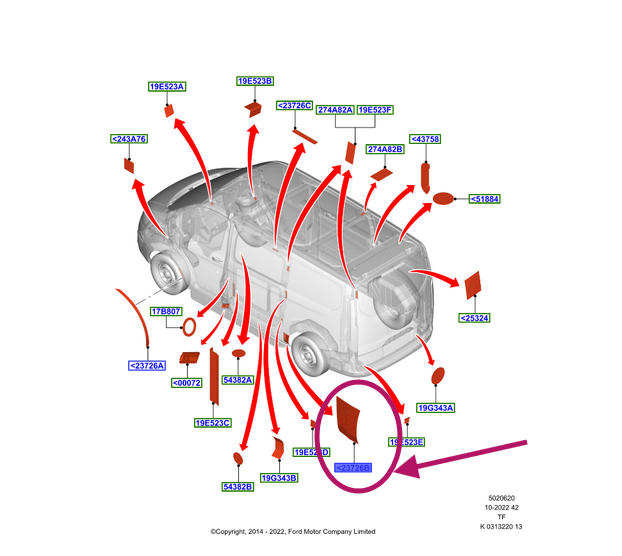Karosszériaelemekhez vagy külső burkolatokhoz alkalmazott dekorációs ragasztószalag, amely esztétikus megjelenést biztosít és védi a felületet a kisebb sérülésektől. Gyárilag meghatározott méretben és kialakításban készül az adott járműmodellhez. Kompatibilis modellek: Ford Transit / Tourneo Custom (TTF, 2012–)