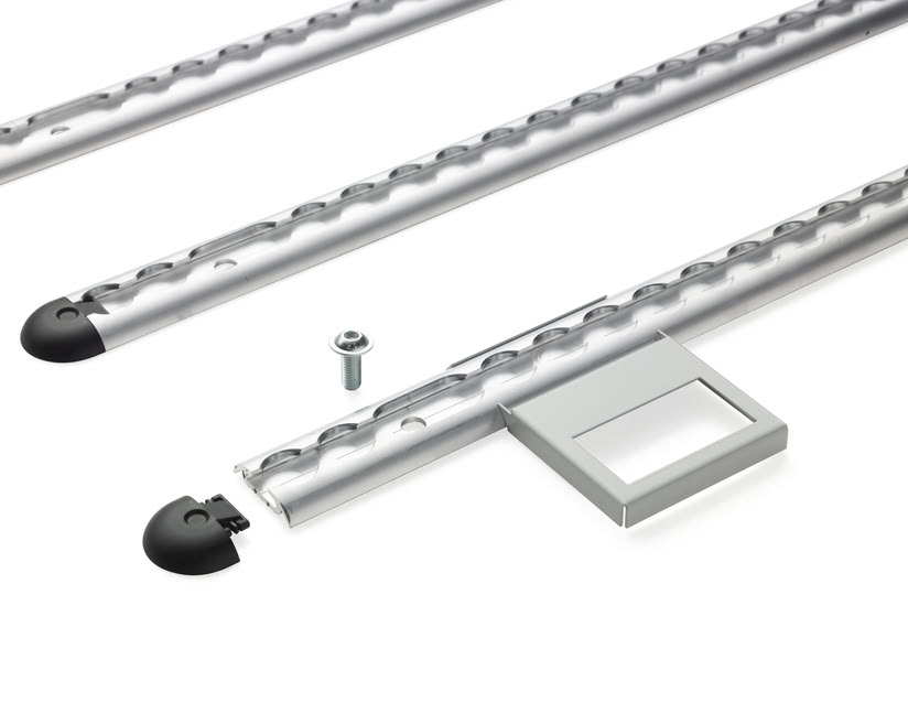 Az Airline tetősín készlet több lehetőséget és rögzítési pontot kínál a rakomány rögzítéséhez. 3 sínt, konzolokat tartalmaz a belső lámpák áthelyezéséhez és az összes szükséges rögzítőt.